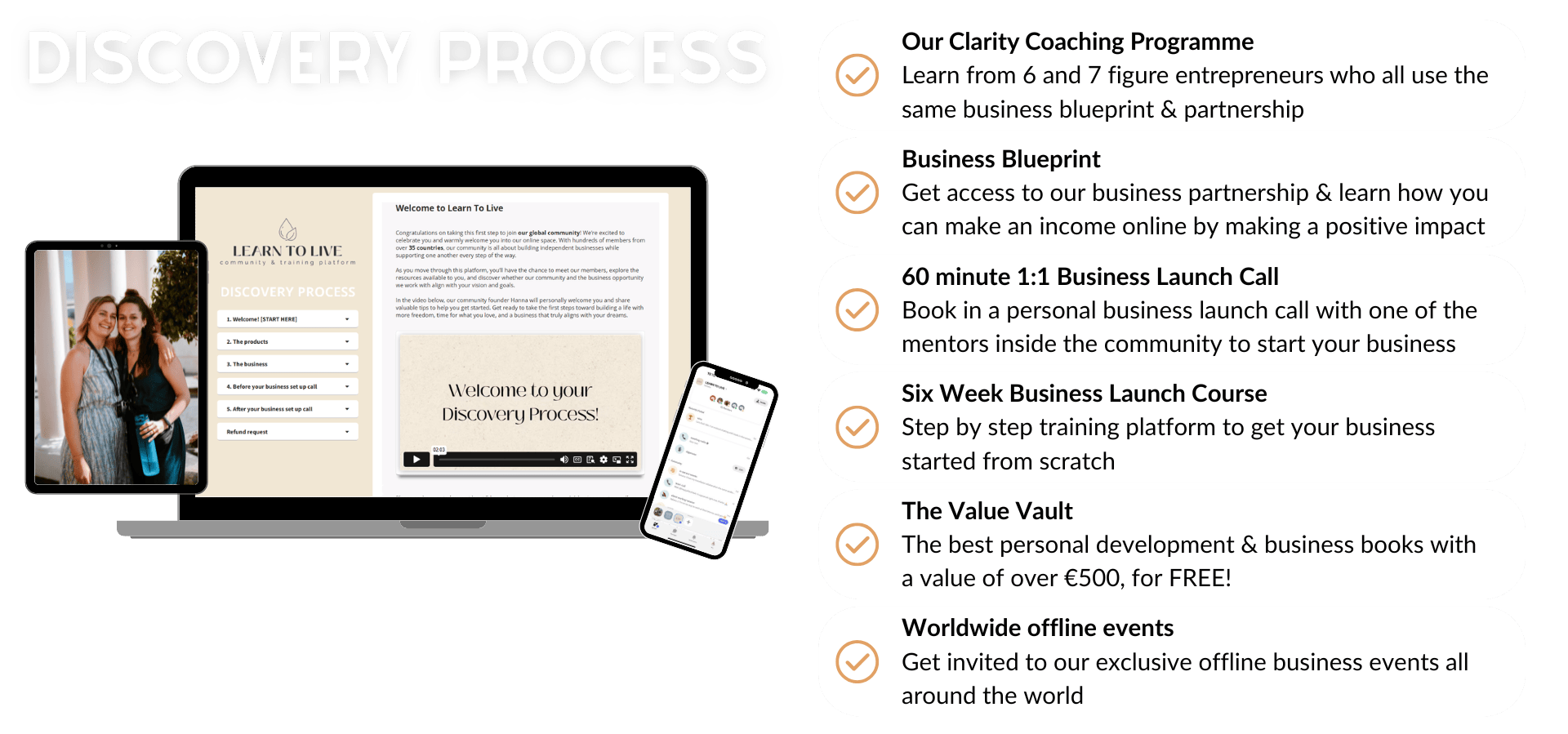 At Learn to Live, we combine a powerful business model with the right education, mentorship, and a deeply connected community - because we know growth doesn’t happen in isolation.