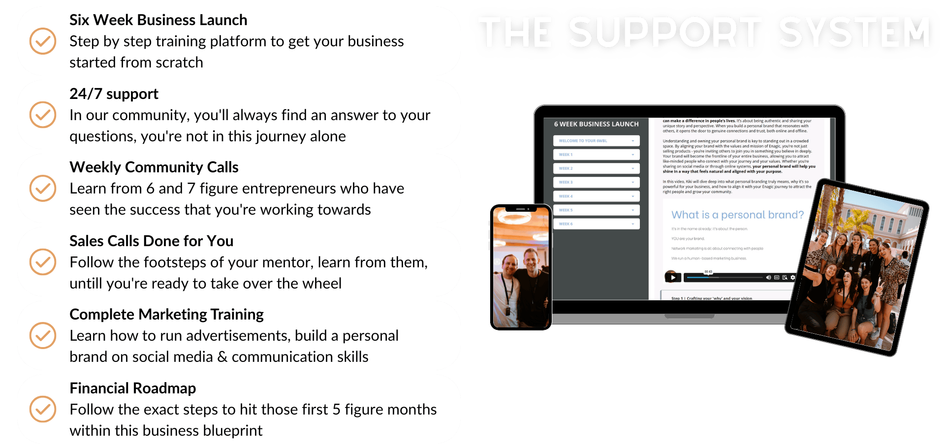 Our multiple training platforms, weekly community calls and 24/7 mentorship will set you up for success